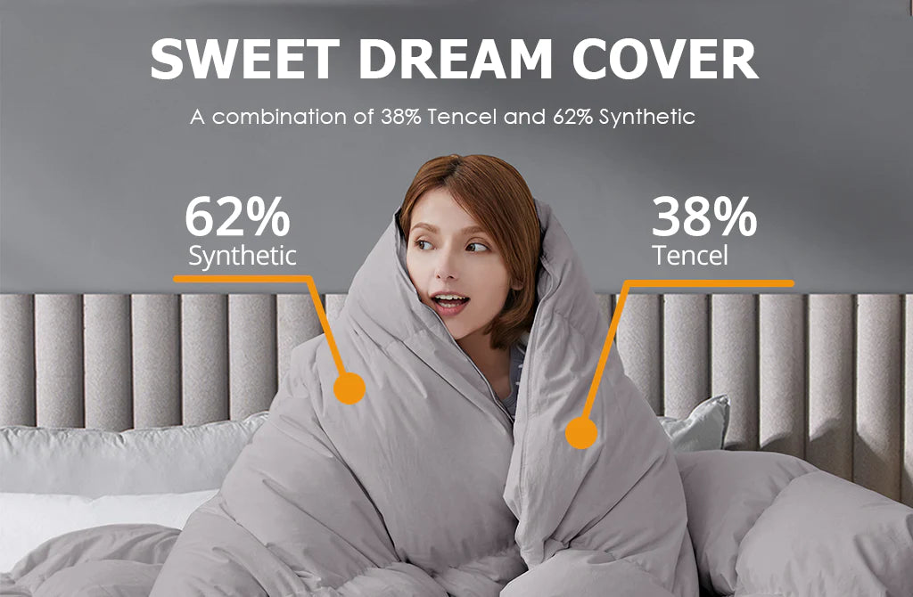 Experience the ultimate in sleep indulgence with our comforter. The fabric is so soft and luxurious, it's like wrapping yourself in a cloud of silk. You'll feel like you're sleeping on a bed of marshmallows, as this comforter gently cradles your body with its feel. Slip into a dreamy slumber each night, knowing you'll wake up feeling rested and rejuvenated.