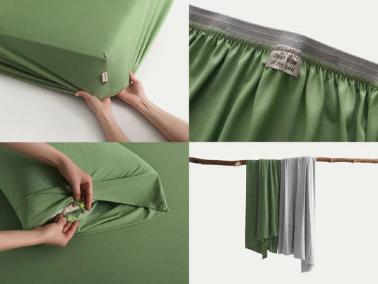 The conifer sheet set is antibacterial and antimicrobial. It is totally skin safe, and can